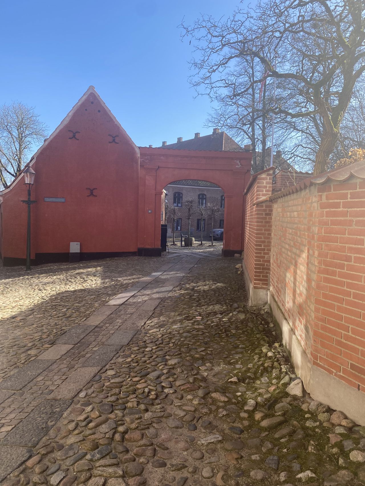 Gå ind i smøgen overfor brønden