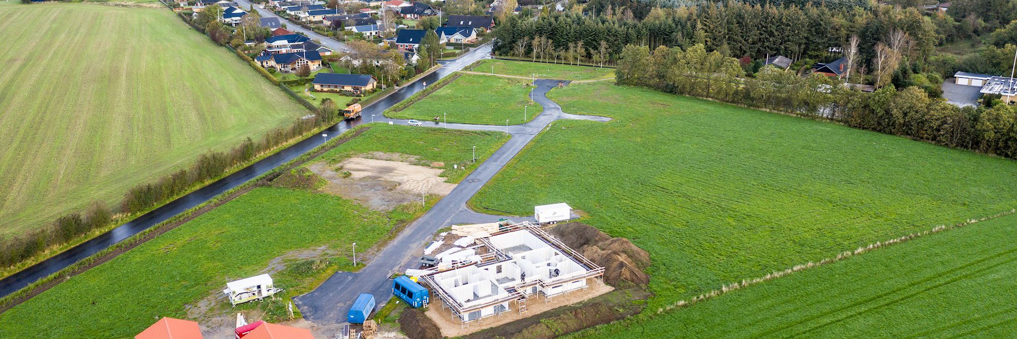 Parcelhusgrundene: Ovenstående mindstepriser er inklusiv moms, tilslutningsbidrag til kloak og udstykningsomkostninger.