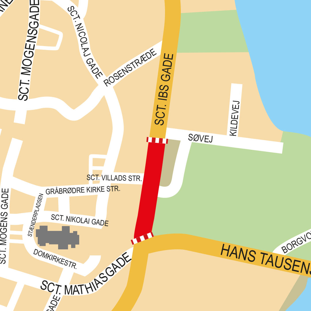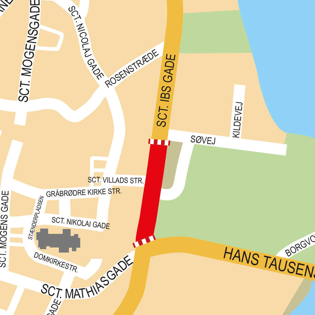 Viborg: Sct. Ibs Gade fra Hans Tausens Alle til Rosenstræde