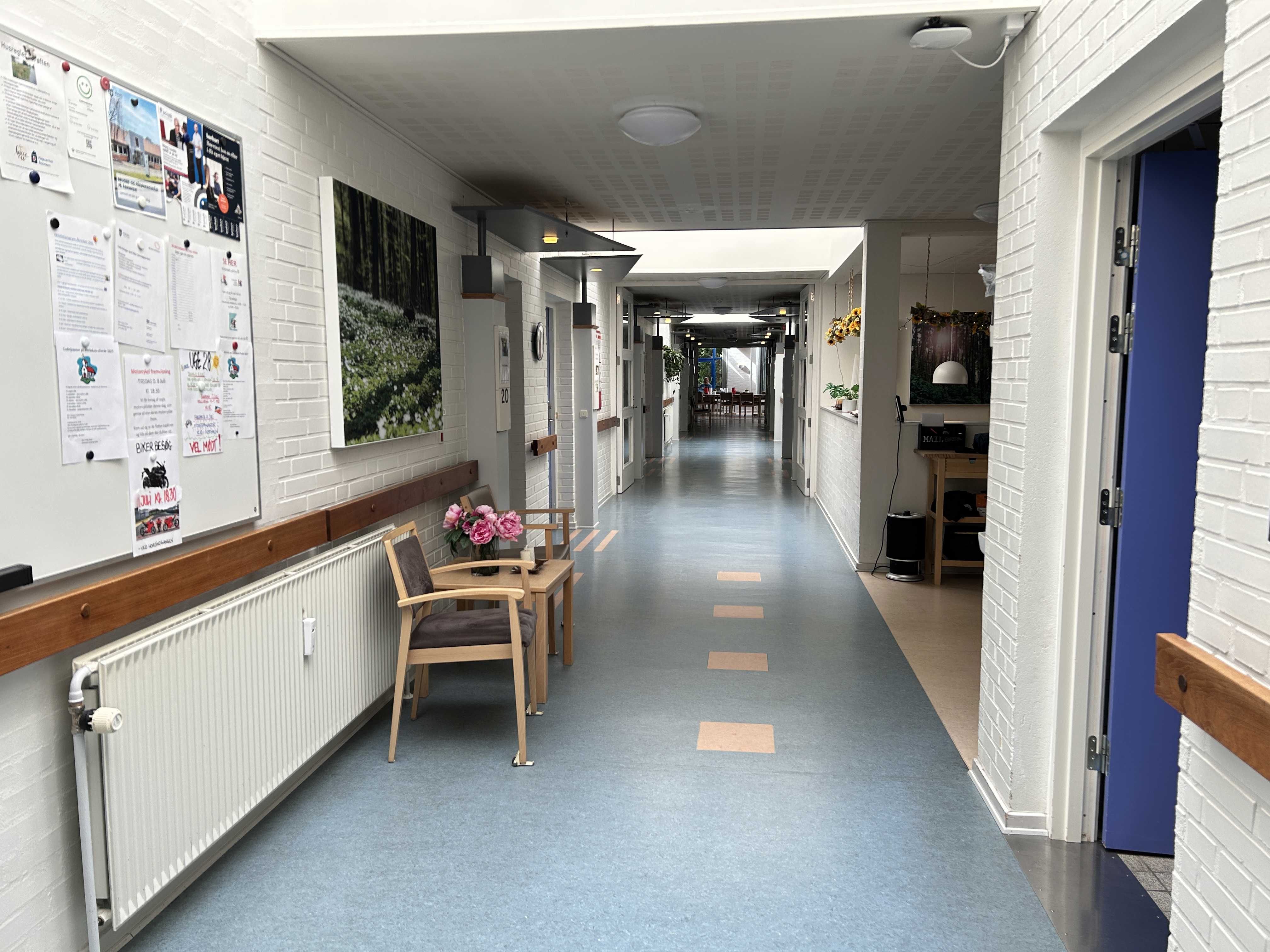 Derudover har vi diverse fælles- og møderum, en sygeplejeklinik, café/festsal, et snoezelrum, som er et sansestimulerende rum, hvor vi kan tilbyde borgerne forskellige kontrollerede stimuli vha. lyd- og synsstimulering og meget andet.