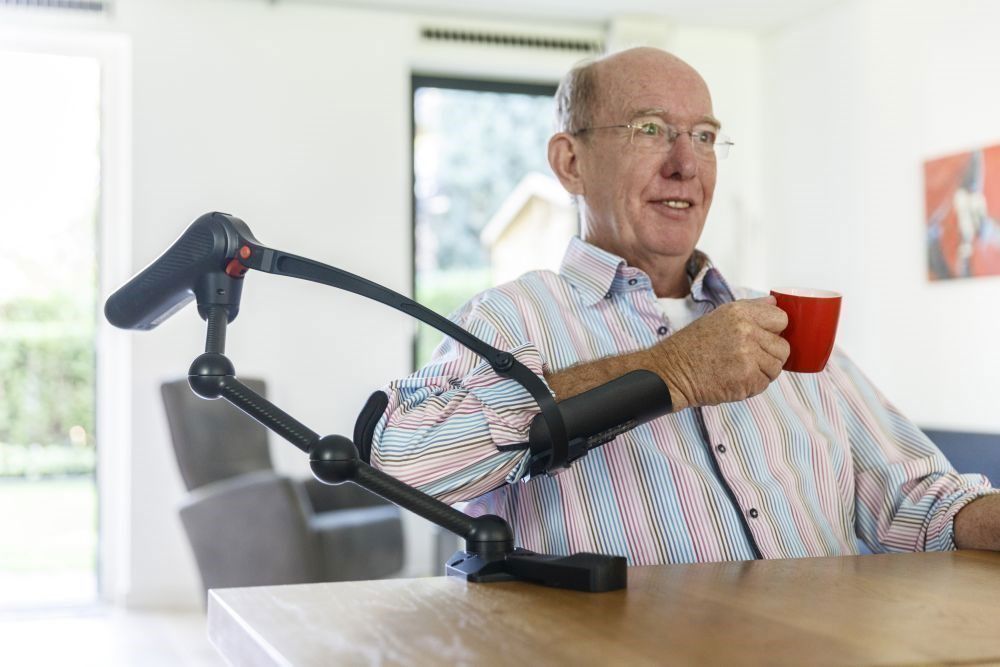 Armstøtten bliver i dag brugt til nogle neurologiske borgere i genoptræning, som har brug for støtte til at udføre bevægelser med armen.