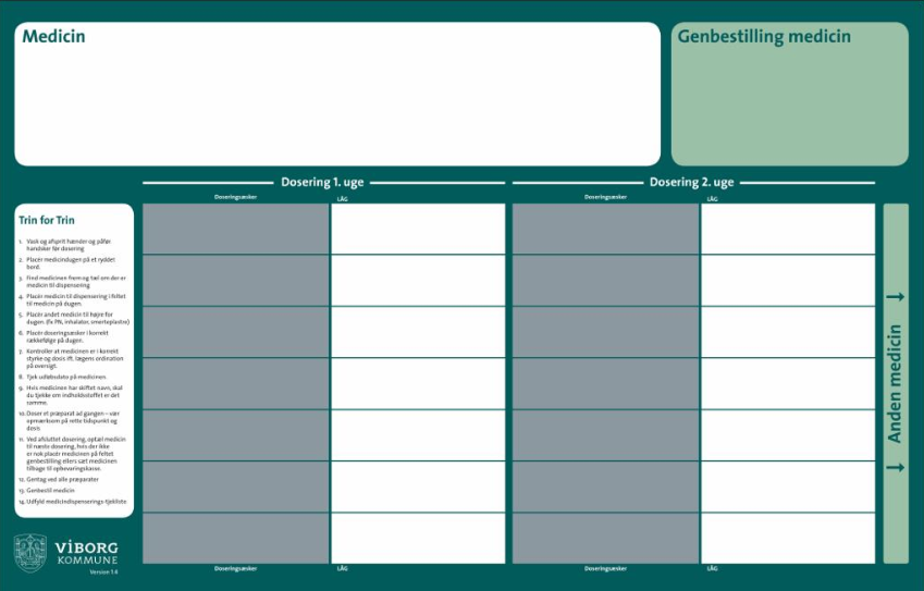 Medicinmåtten bruges i hjemmeplejen til at dispensere medicin. Måtten findes i to udgaver, en til medarbejderen og en til borgeren.