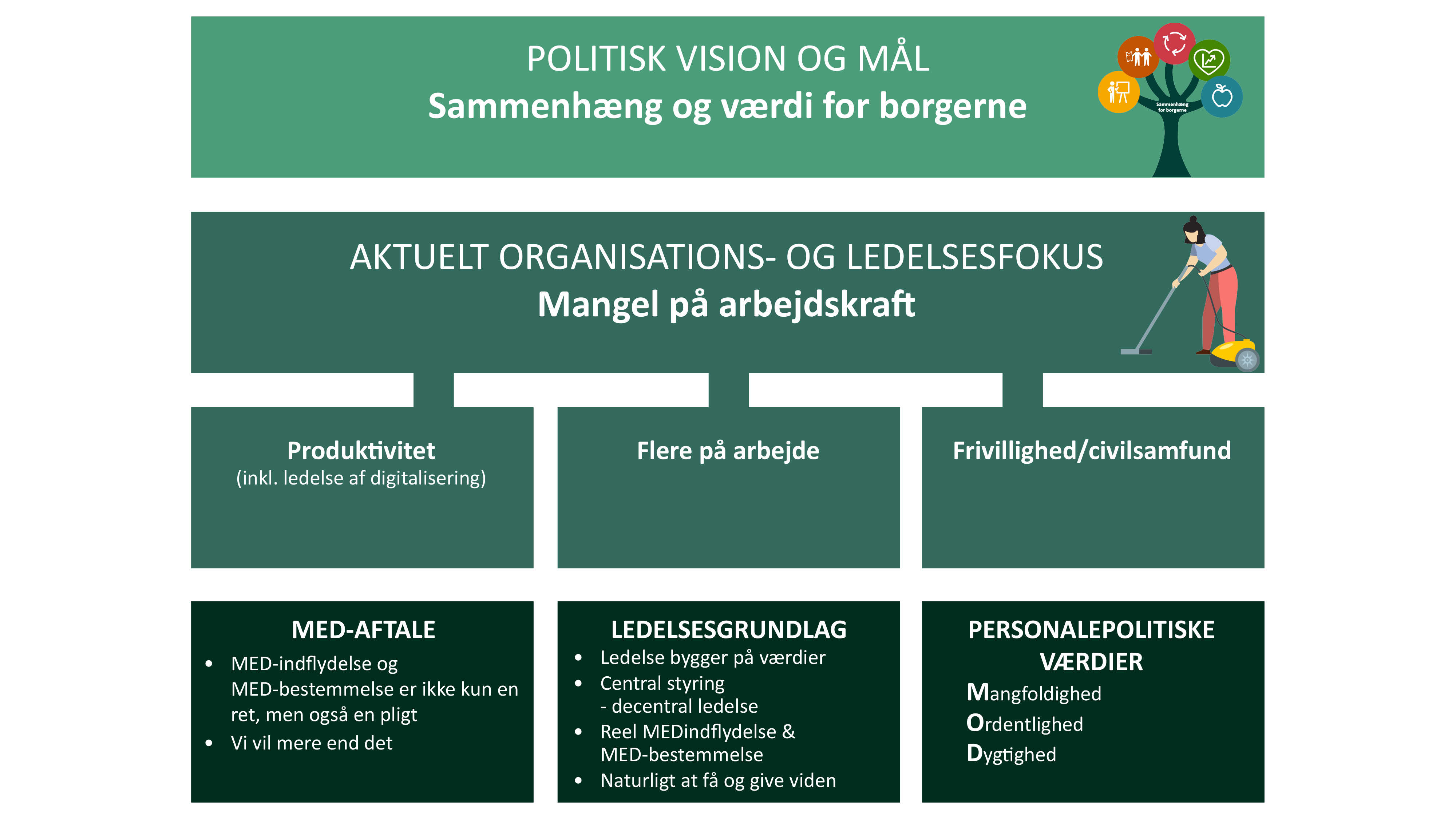 Værdier, ledelsesgrundlag og MED-aftale