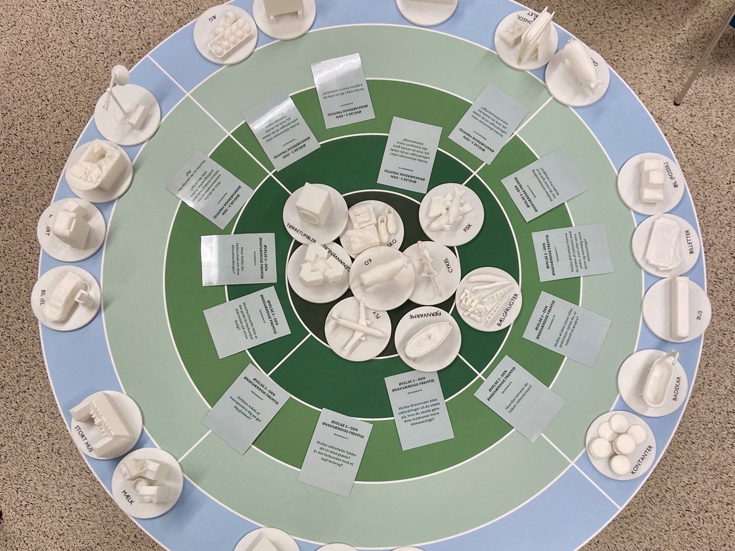 Spillepladen her med tilhørende artefakter er blevet brugt på samtalecaféerne som grundlag for borgernes fortællinger om deres gode klimavaner, -valg og -fravalg i deres hverdage.