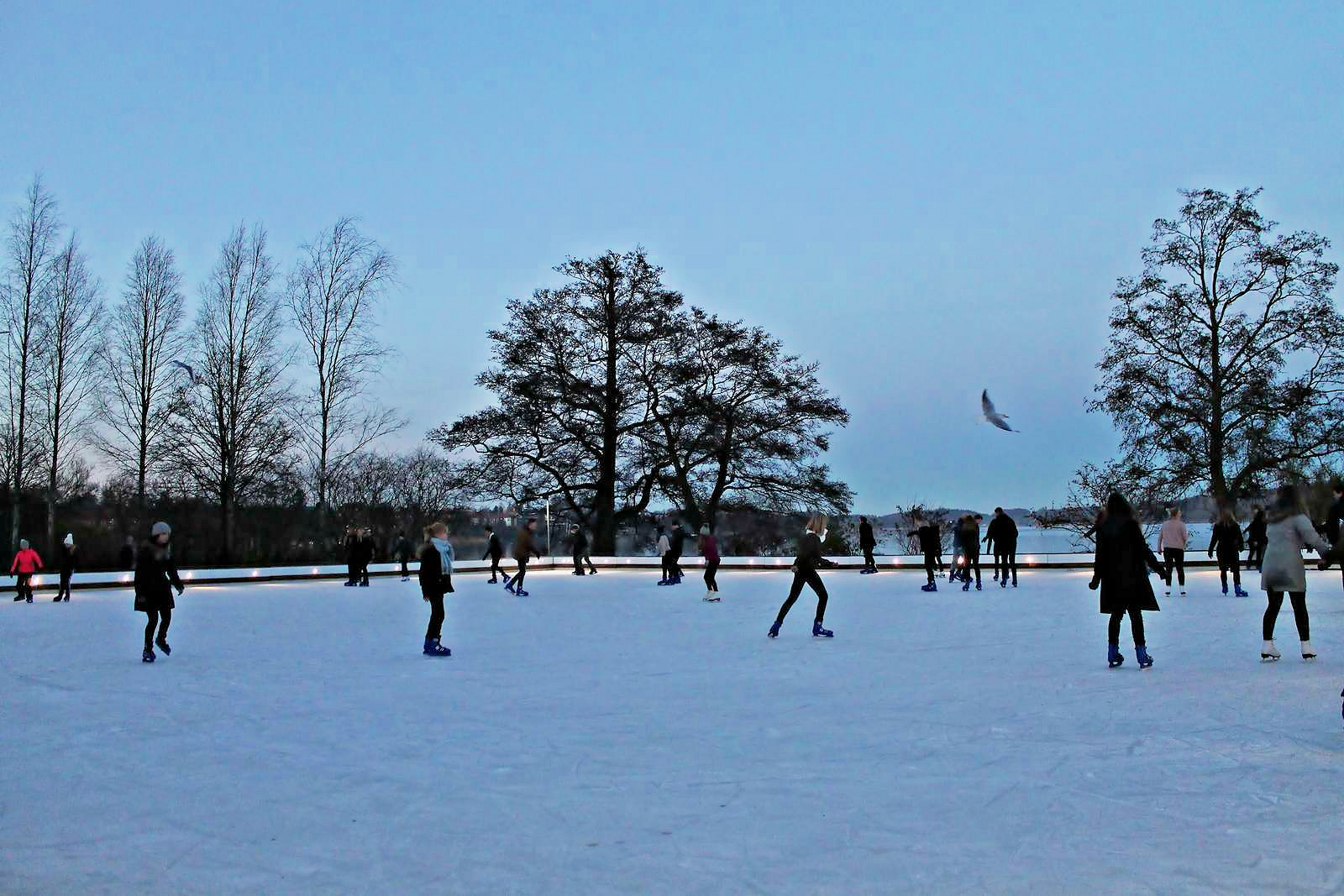 Få en fantastisk oplevelse på skøjtebanen i smukke omgivelser. Tag dine egne skøjter med, eller lej dem her, hvor du også kan få en kop varm kakao at lune dig på.