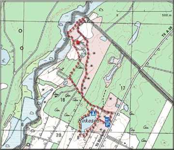 Vandreruten er i alt 2,5 km lang og starter ved P-pladsen ved Birkesø.