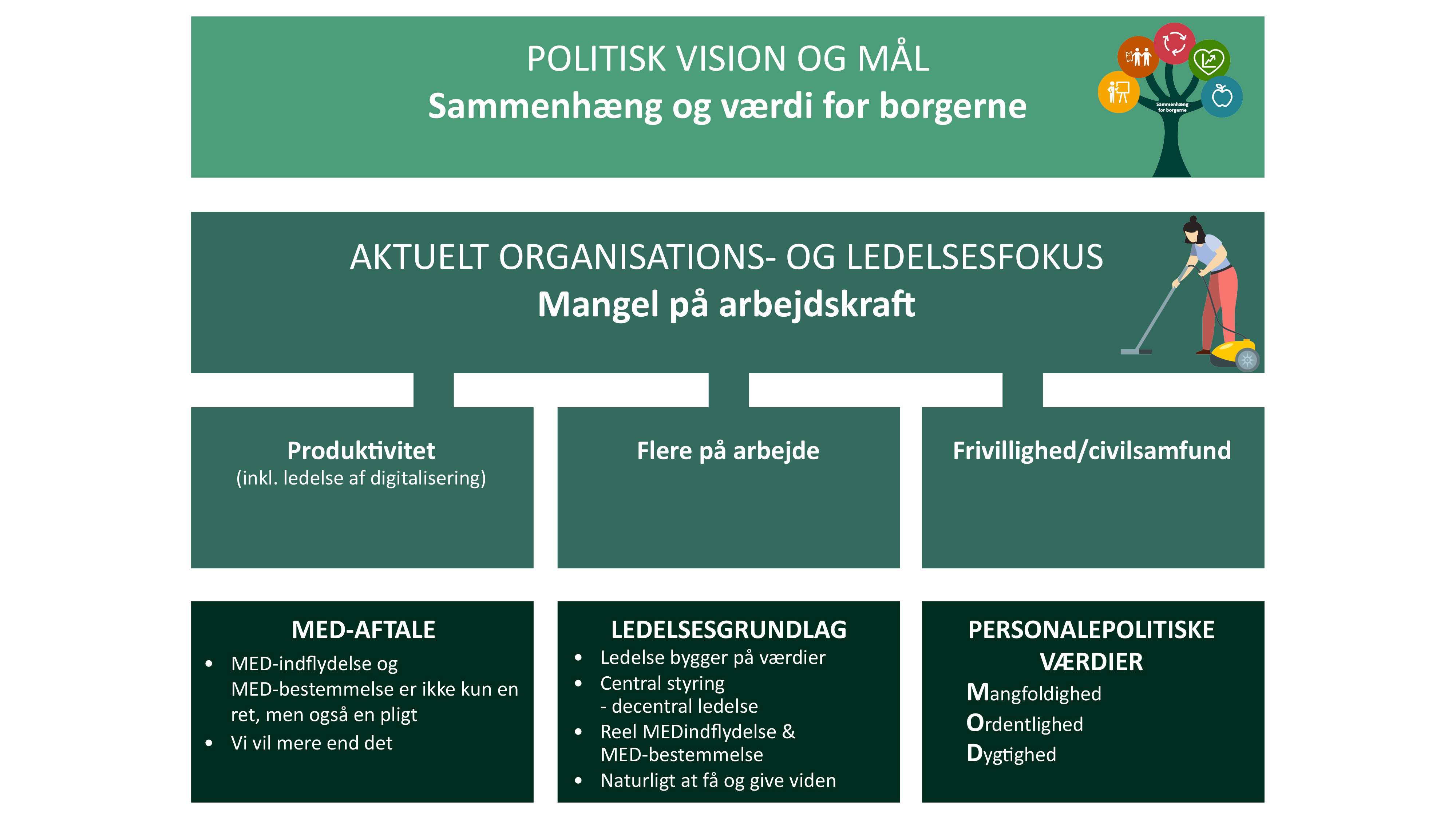 Værdier, ledelsesgrundlag og MED-aftale